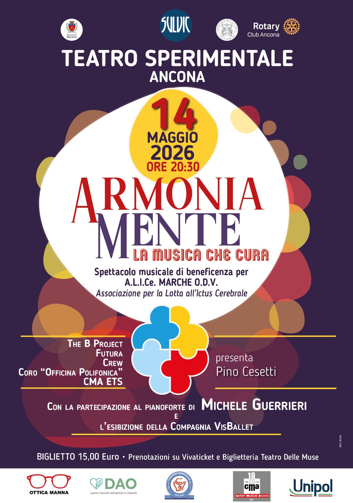 Giovedì 14 maggio 2026, alle ore 20.30, il Teatro Sperimentale di Ancona ospiterà ARMONIAMENTE – La Musica che Cura, uno spettacolo musicale di beneficenza a sostegno di ALICe MARCHE ODV.
